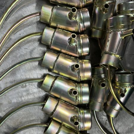 These lines are larger than what was on the GT race cars as we use 25mm tubing. The fittings are 30mm and can easily be adapted to AN fittings available at many AN suppliers. The steel tubing is yellow zinc plated. These do require some fitting to clear everything as do all GT lines.